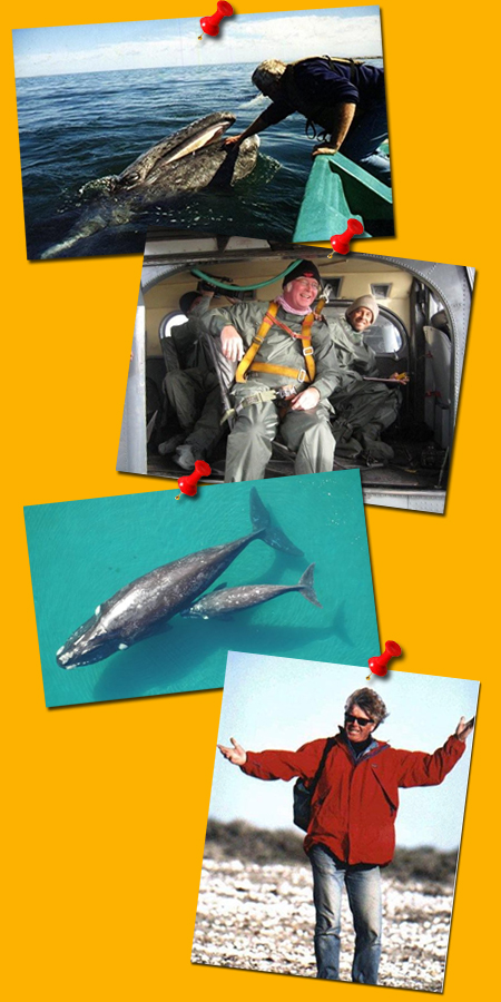 Starting in 1990, he has traveled once a year to Patagonia, donned a survival suit, and strapped himself into a seat bolted to the frame of an Argentine Navy airplane. With the six-foot wide door open, he hangs out of the airplane, circling four hundred feet above the water, and takes pictures of the Southern Right whales that gather to mate and one year later, return to give birth to their calves in the tranquil waters surrounding Peninsula Valdes.